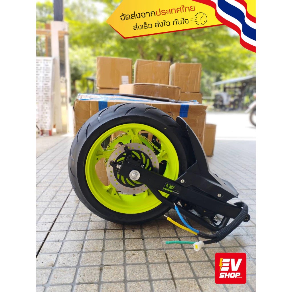 ชุดมอเตอร์ขับกลางพร้อมใส่ ขนาดล้อ14" motor 3000w พร้อมชุดส่งกำลัง จานเบรค สวิงอาร์ม ล้อสีเขียวเลม่อน