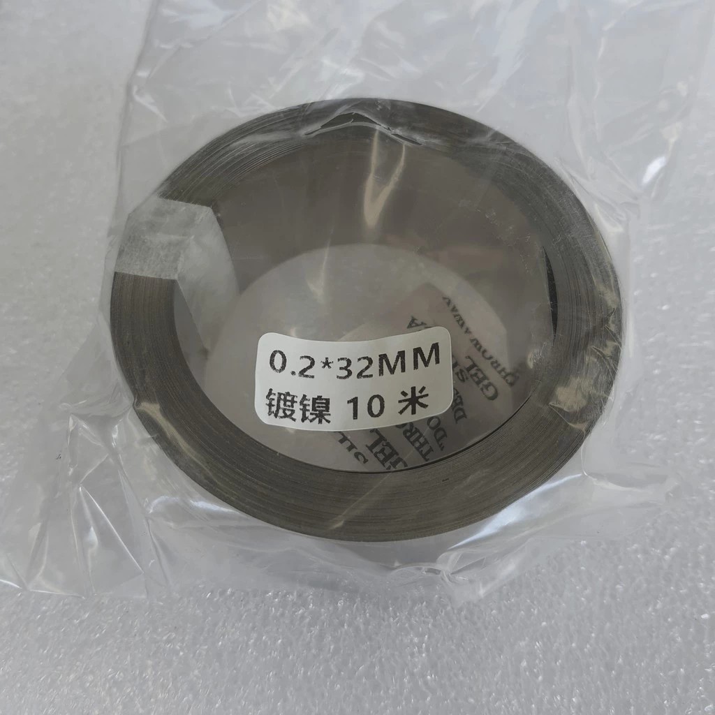 แผ่นนิกเกิล Nickel plate สำหรับ spot บัดกรี เชื่อมแบตเตอรี่ แพ็คแบตเตอรี่ หนา 0.2 mm กว้าง 3.2 mm ยาว 10 เมตร